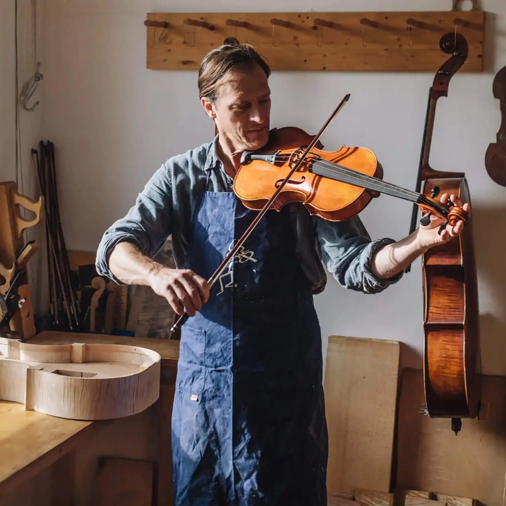 Sie finden bei mir Geigen, Bratschen und Celli – gefertigt nach klassischen, italienischen Vorbildern.